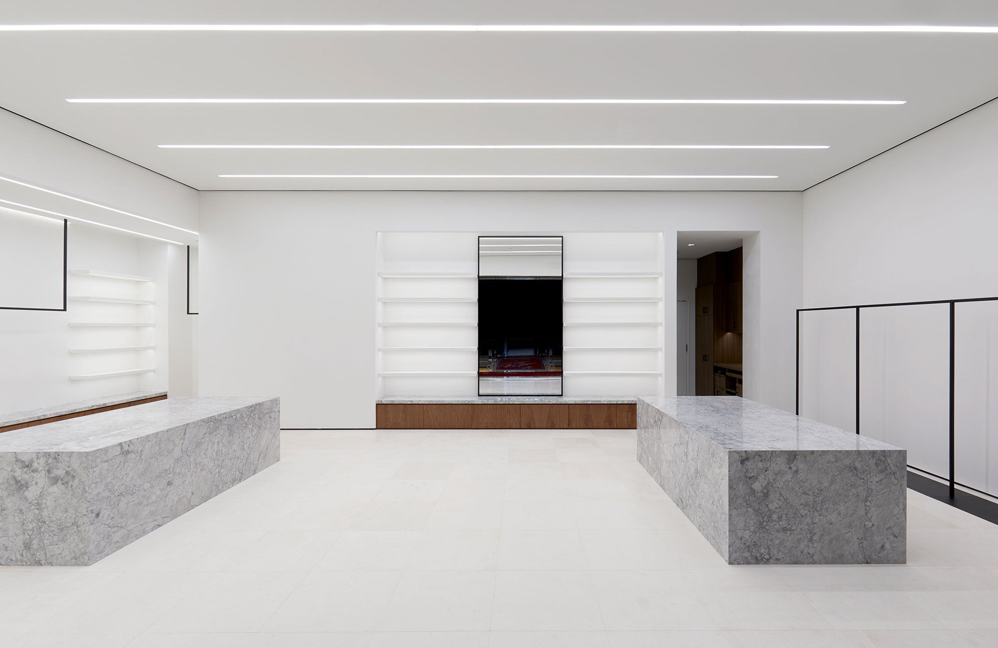 Having carefully hand-sourced the materials for the space, all natural elements fuse with Spanish limestone on the floor, American walnut for the cabinetry and a calming Brazilian Quartzite for the countertops in a sprawling space designed to house our entire product offering. Illuminated by linear strips of shadow-free light, the Venetian plaster walls and open spaces create an elevated experience for the Las Vegas customer.